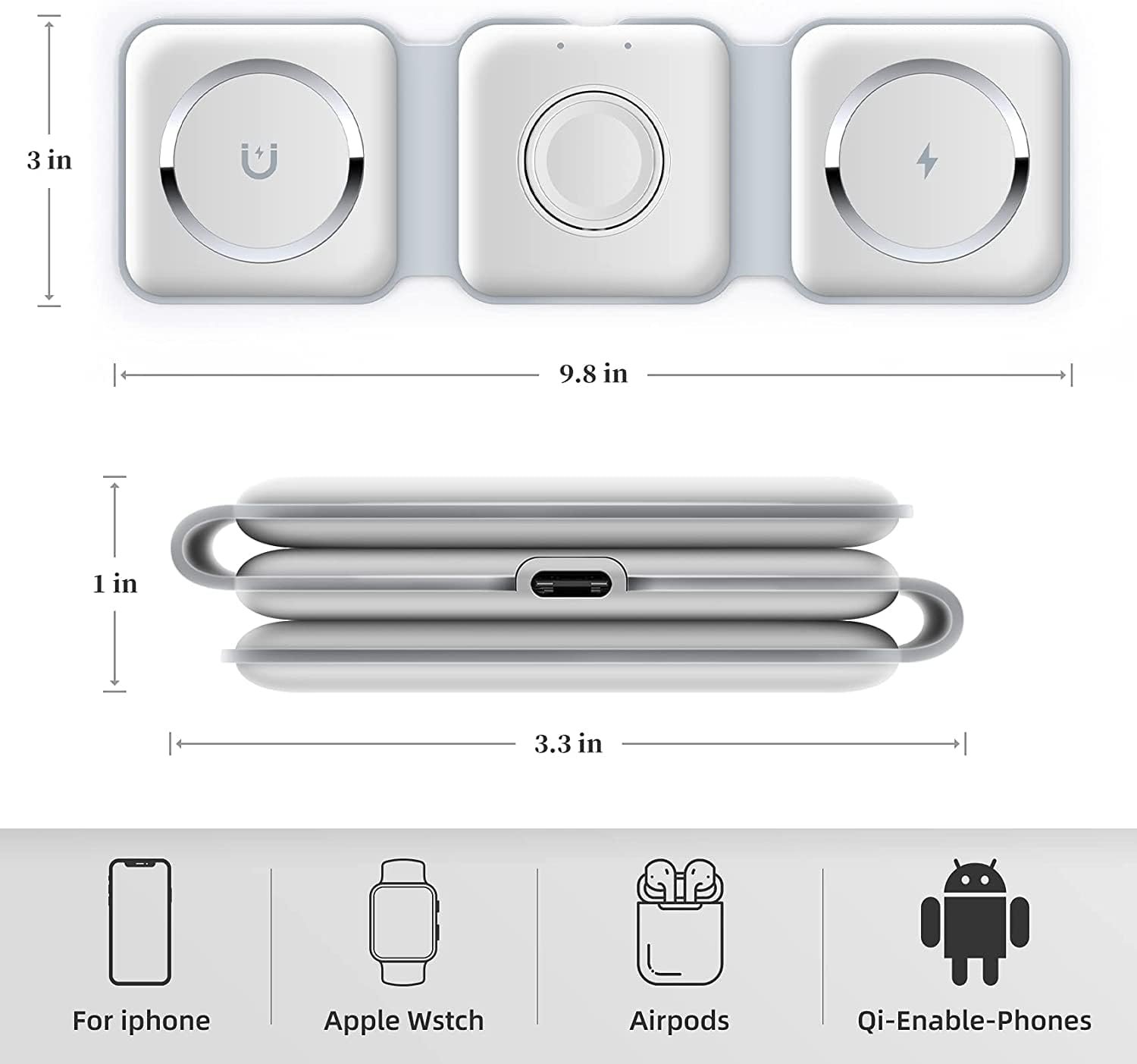 Charge your phone, Apple Watch, and AirPods all at once! π This versatile wireless charger is compatible with AirPods 2/3, AirPods Pro/Pro 2, and Apple Watch Series 6/5/4/3/2/SE. π±βοΈπ§