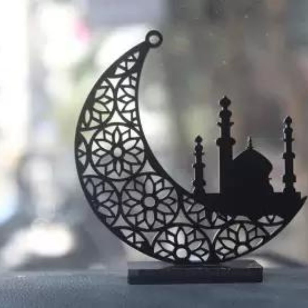 Crafted with precision and attention to detail, this decor item boasts high-quality acrylic construction. The durable material ensures longevity, allowing you to enjoy the ethereal beauty of the crescent moon and masjid silhouette for years to come.