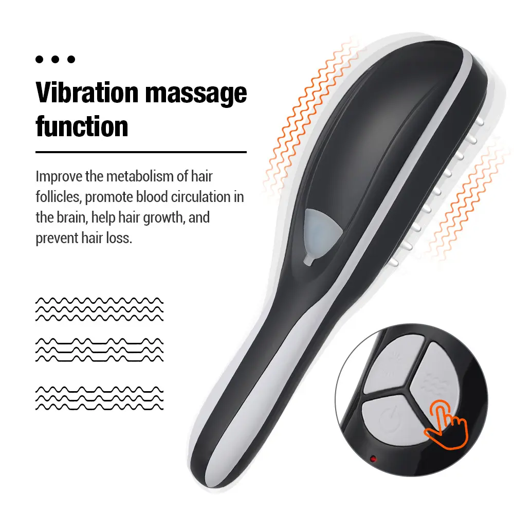 1.Multifunctional massage comb, vibration massage + red and blue light therapy + nano atomization, three effects in one,