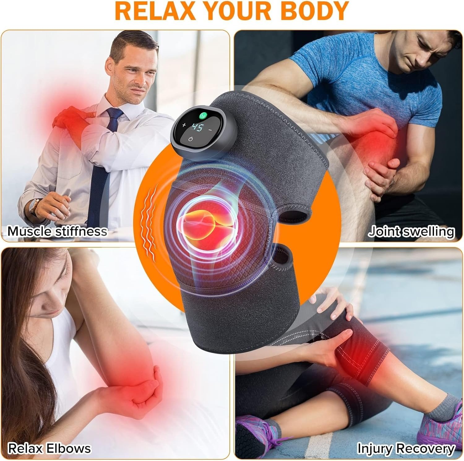 - 3 vibration modes, 5 temperature options: You can choose the vibration frequency and heating temperature according to your situation and preferences. Provide relaxation to your joints.