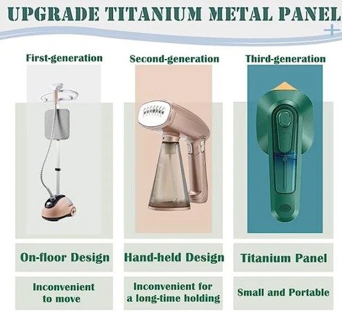 Upgraded Titanium Metal Panel: The steam iron for clothes uses a large titanium panel, irons at a constant temperature of 150℉, quickly preheats, and irons smoothly. It can easily penetrate every fiber in the clothes so that the clothes can quickly recover as new, even the precious fabrics can be carefully taken care of without damaging the clothes.