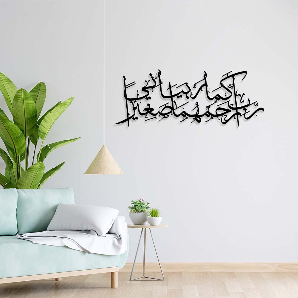Spiritual Essence: Captures the profound prayer “Rabbir Hamhuma Kama Rabbayani Sagira” from the Quran, invoking God's mercy for parents as they have nurtured in childhood.